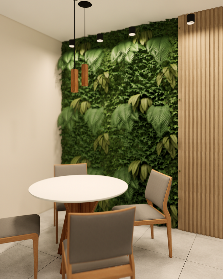 Projeto de Interiores de área administrativa, onde usou-se os conceitos de biofilia para proporcionar melhor conforto e integração aos colaboradores, diretores e clientes da empresa.